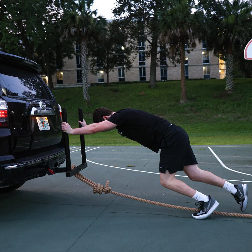 You can get insane traction and resistance with this sled connect on your vehicle. It’s easy to set up, you don’t have to have a bunch of weight plates to get going and it provided a great workout. I pushed my f150 across the parking lot and back over 30 mins and was tanked 💀